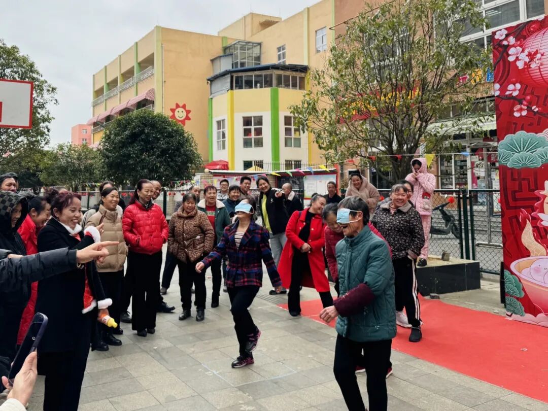 剑江村一组以开场舞《过年啦!》拉开活动的序幕,身穿鲜艳服装,扭着身子、脚步轻快,更是变换多种队形和花样,群众都被欢快的氛围带动起来,小孩在旁边学得有模有样。其他小组节目也发挥自己的特长,有的舞姿曼妙,有的歌喉嘹亮,共同庆祝这个幸福团圆的日子。