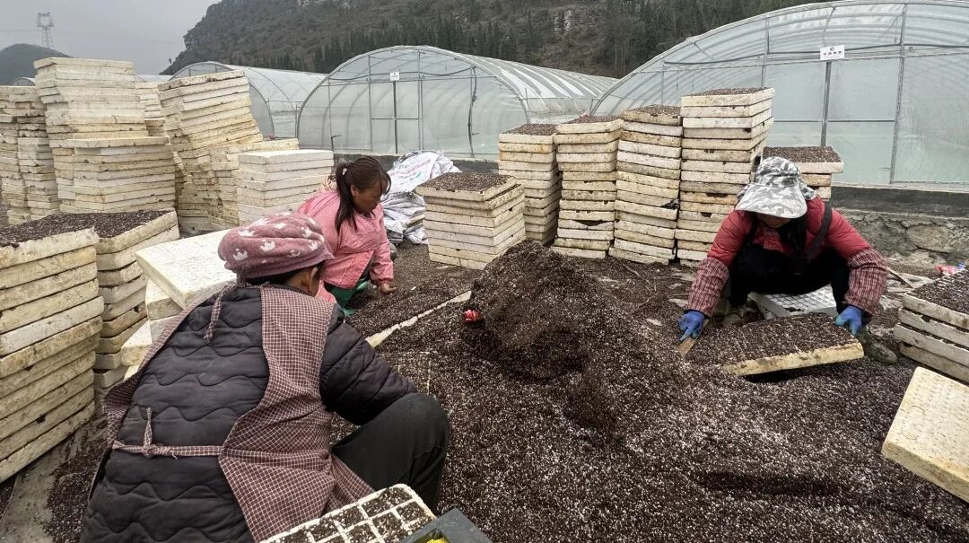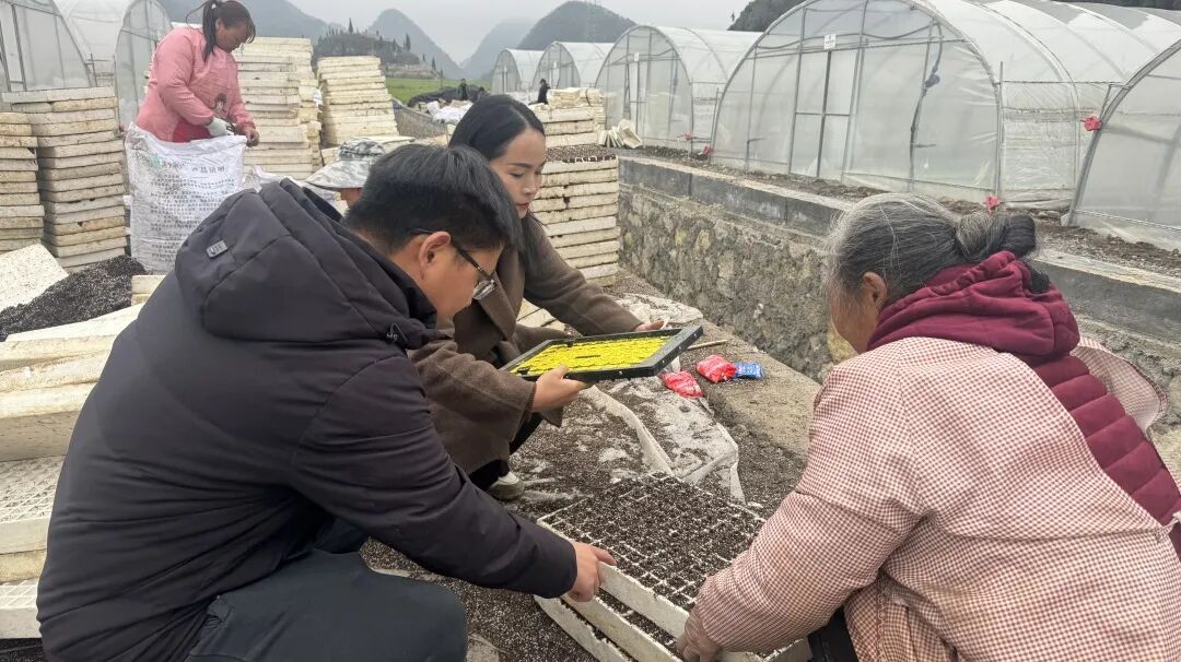 贵州盛禾农业现代化服务农民专业合作社负责人 李龄菊:用的是“手工播种+机械化”两头进攻,我们的目标是提前完成任务。今年在旱育苗技术这块,通过喷头的改进,想在去年的基础上再上一个台阶。